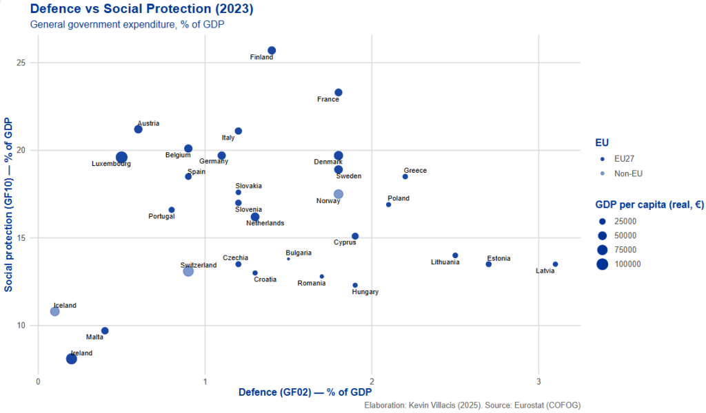 For decades, European debates on public finance have been shaped by a simple intuition: every euro spent on defence is a euro taken away from social protection. When Russia invaded Ukraine in 2022 and military budgets began to rise across the continent, this idea quickly resurfaced. Europe, many warned, would be forced to choose between security and welfare.